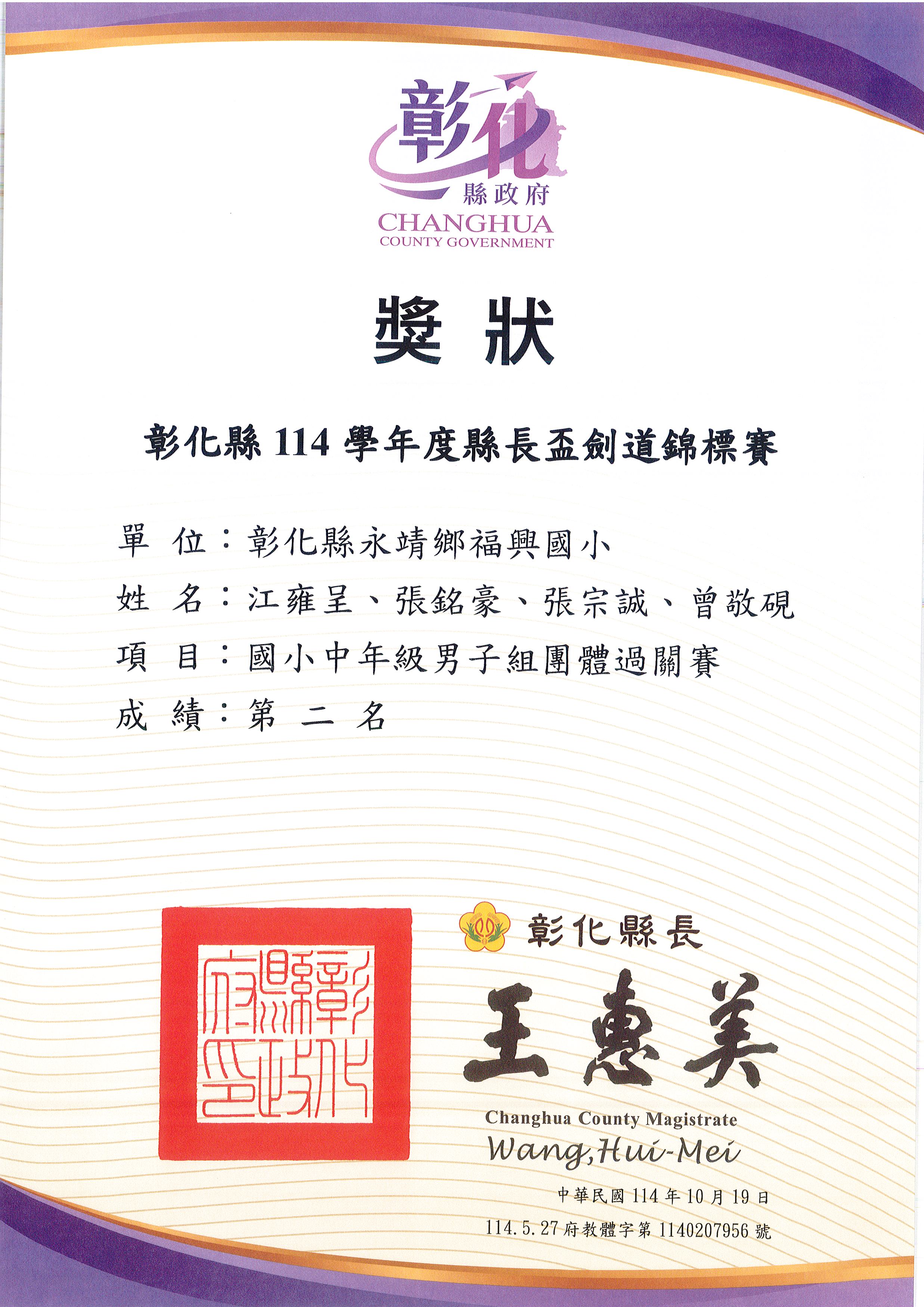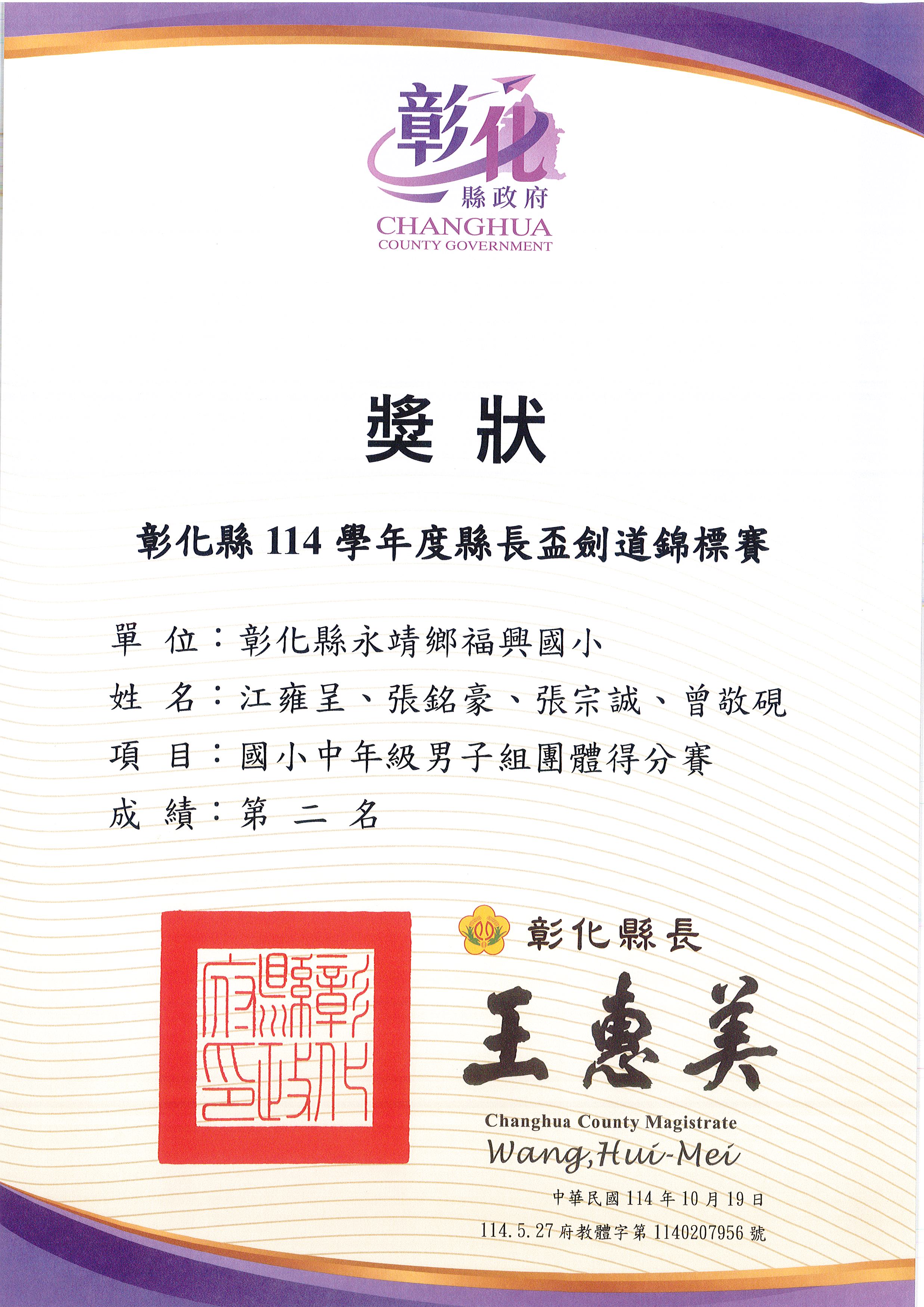 彰化縣 114 學年度縣長盃劍道錦標賽