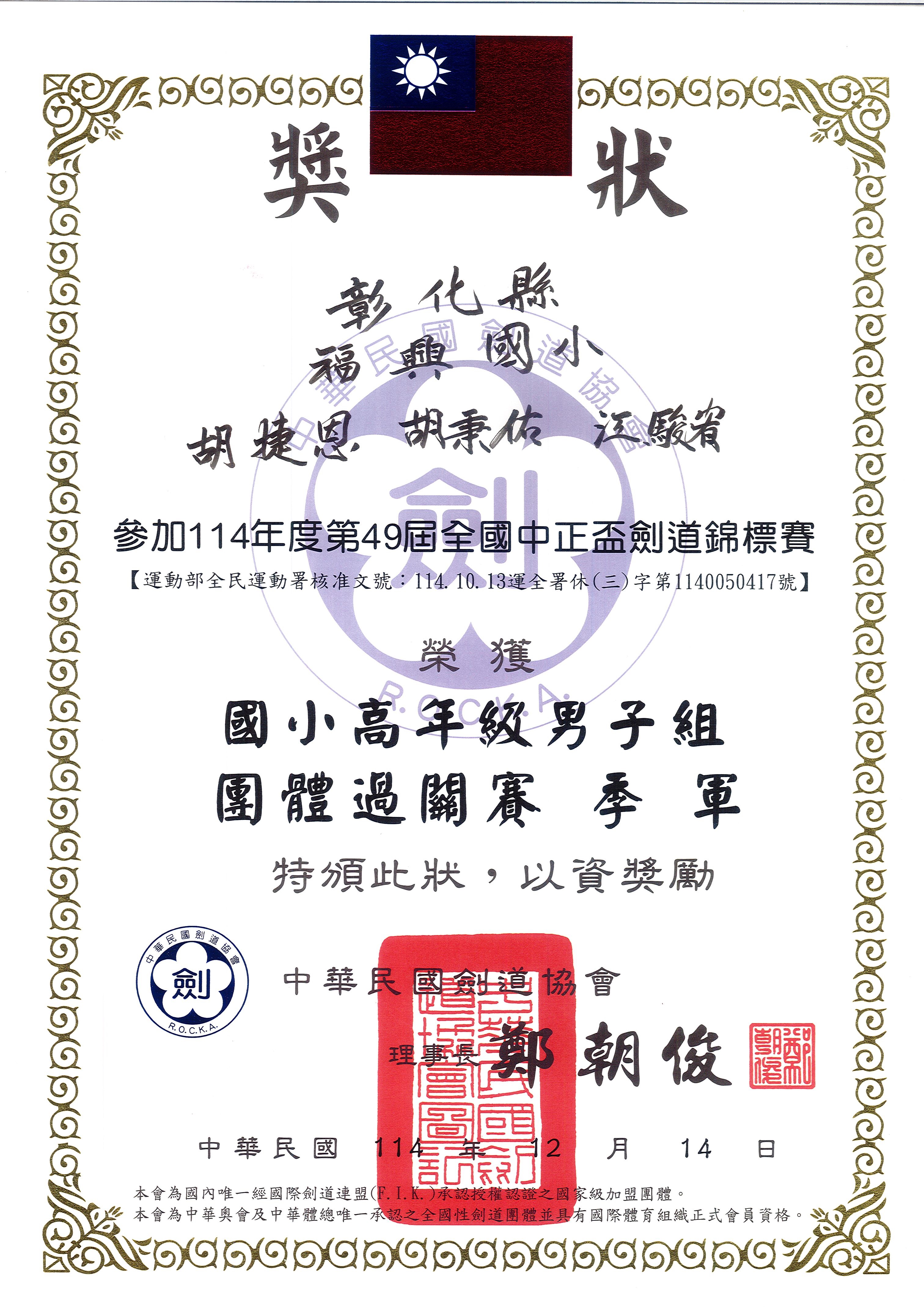 三.福興國小劍道社榮譽榜: